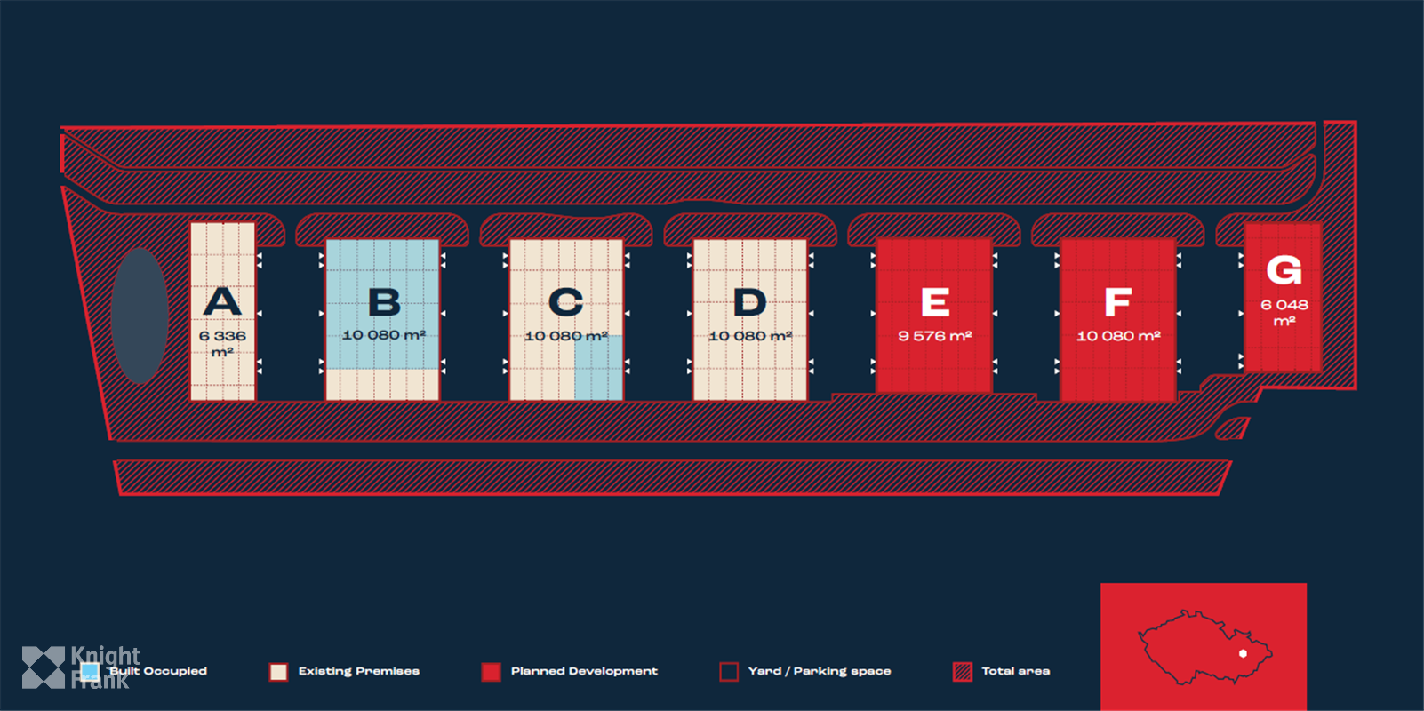 | HALA E + HALA F | 19 500 m² | 10 m | NA DOTAZ | Cena na vyžádání |