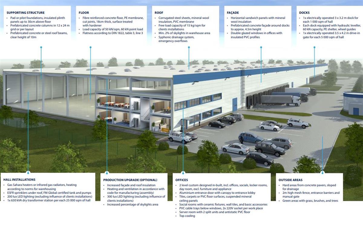 | Hall B | 4 753 m² | 11.6 m | 2 měsíce | Cena na vyžádání |