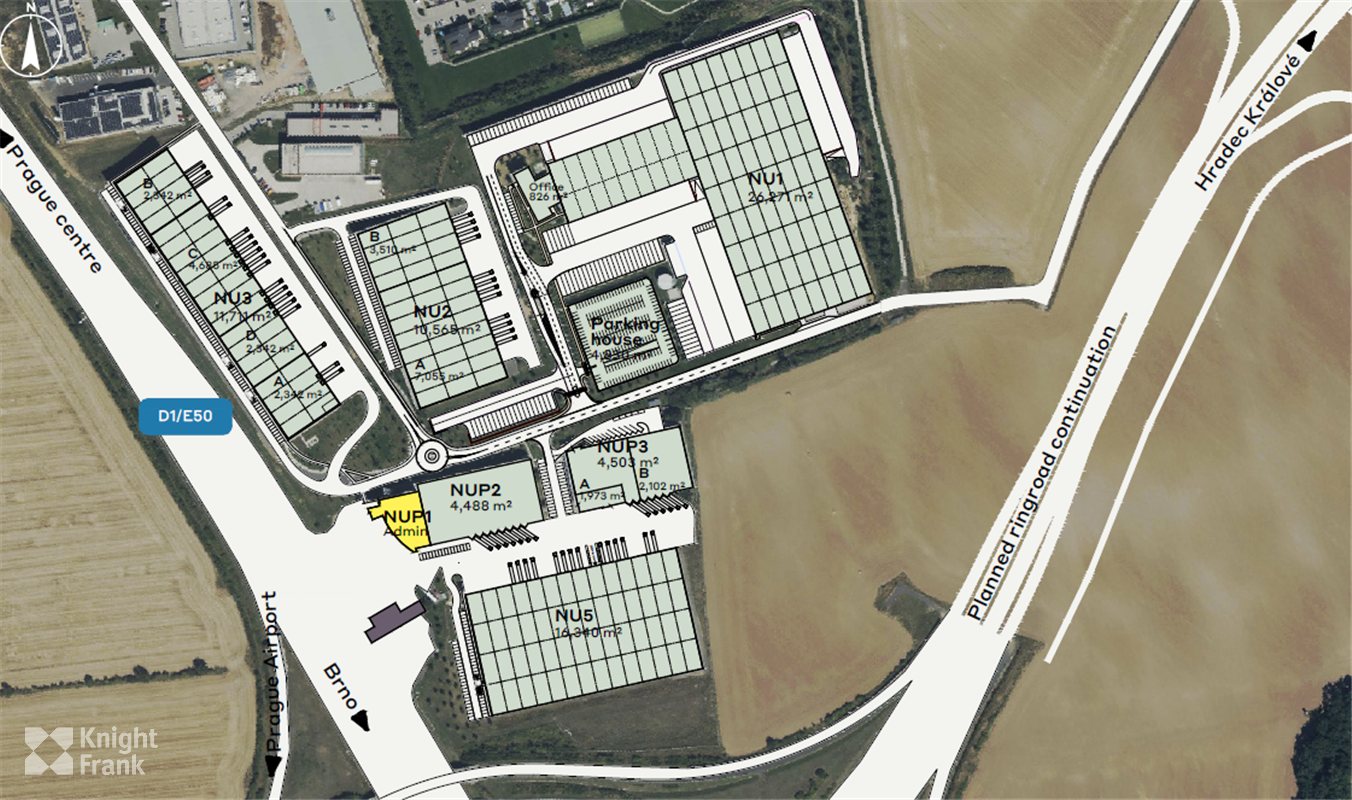 • The Industrial Park is strategically located at the intersection of the main north-south motorway D1 (E55) and the Prague Ring Road, with excellent connections to the centre of Prague, the international airport and the main north-south European corridor.