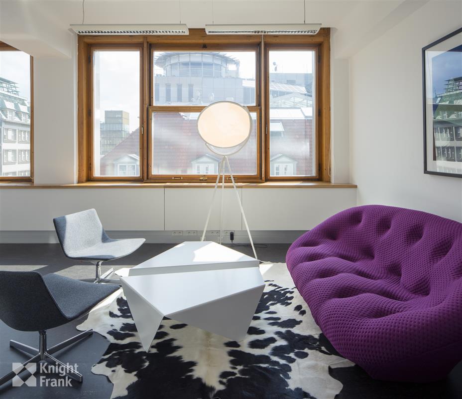 The renowned SAD Atelier took care of the unique interior design. You will have at your disposal, among other things, a reception desk and a parking space in the underground garage. Your business partners will appreciate the possibility of parking in the nearby Kotva Shopping Centre and Palladium Shopping Centre.